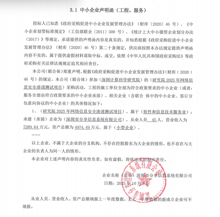服务要求:开展研究院2025年网络信息安全渗透测试项目,详见招标文件第三章采购项目需求。
