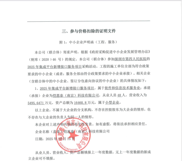 ************医院(以下简称为采购人)委托实施采购,本项目2025年9月30日发布采购公告,定于2025年10月15日在深圳市福田区上步南路1001号锦峰大厦22楼进行开标和评审,2025年10月15日定标。现中标(成交)结果已经采购单位确认,特此公告如下: